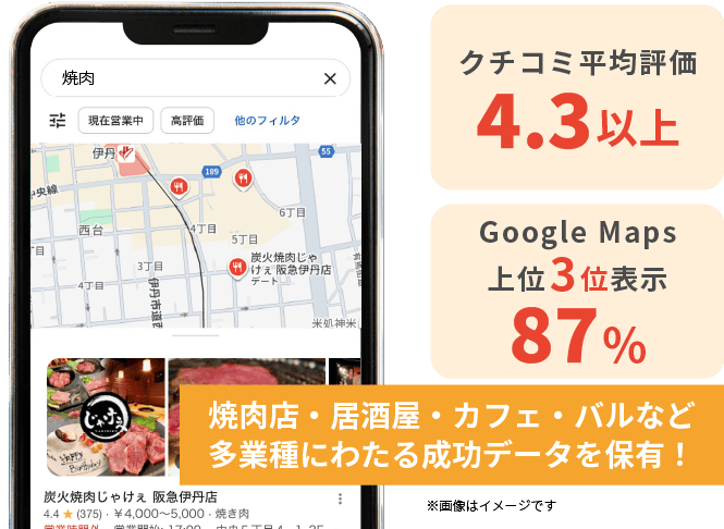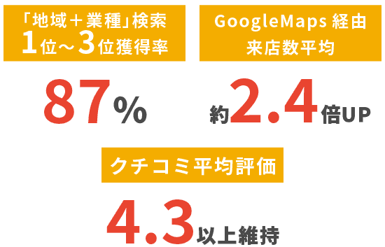 エリア・競合状況で変わりますが、上位表示される店舗では