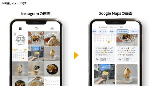 Instagramとの連携で、SNSユーザーにだけ発信していた情報を集約し、検索シェアNo.1のGoogleへ鮮度の高いうちに公開することで、Google Business Profileの情報を充実させます。