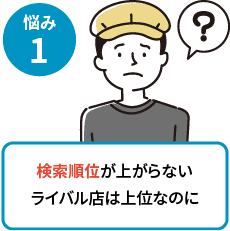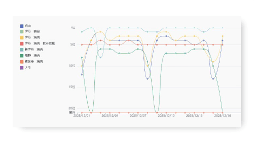 順位が上がらない原因を特定し、ライバル店の“勝てるキーワード”を分析します。
