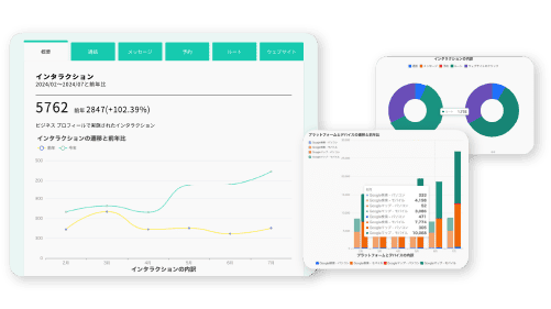 検索表示数からユーザーのアクションまで細かくまとめて分析できるため、効率的な比較・対策でGoogle Business Profile運用を最適化します。