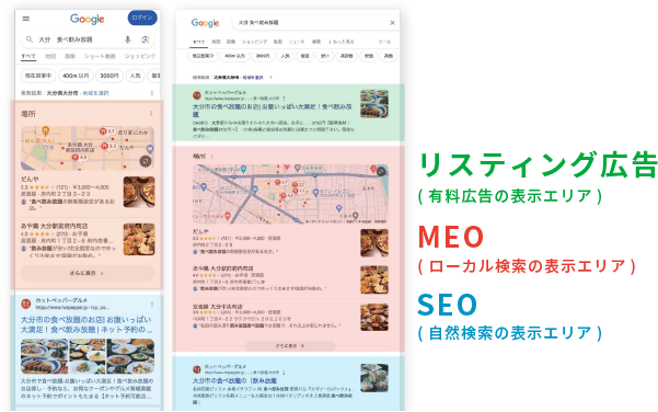 「広告」や「自然検索」より上部に「ローカルパック(MEO)」が